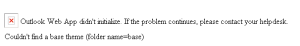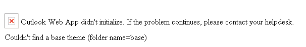 Following the isntall of Update Rollup 2 for Exchange 2010 Service Pack 1, I have found that I was unable to browse to the Outlook WebApp. Receiving an error “Could not find a base theme”.