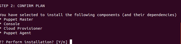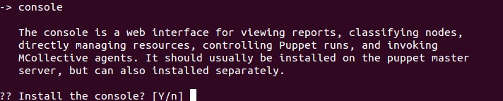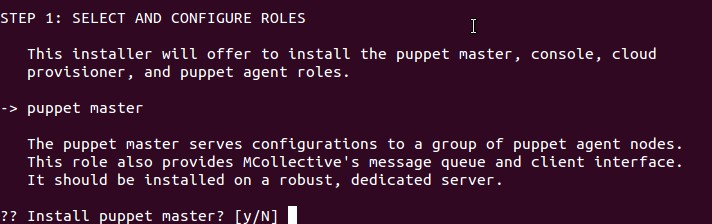4) You will be prompted to Install puppet master, enter (Y)es.