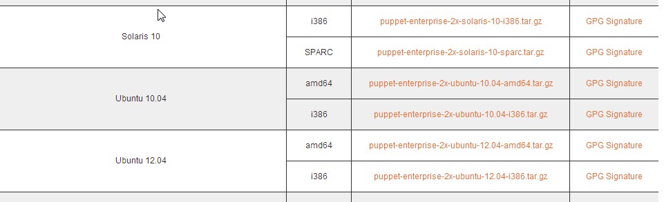1) Download the Puppet Enterprise for the tarball specific to the Ubuntu operating system from http://info.puppetlabs.com/download-pe.html.