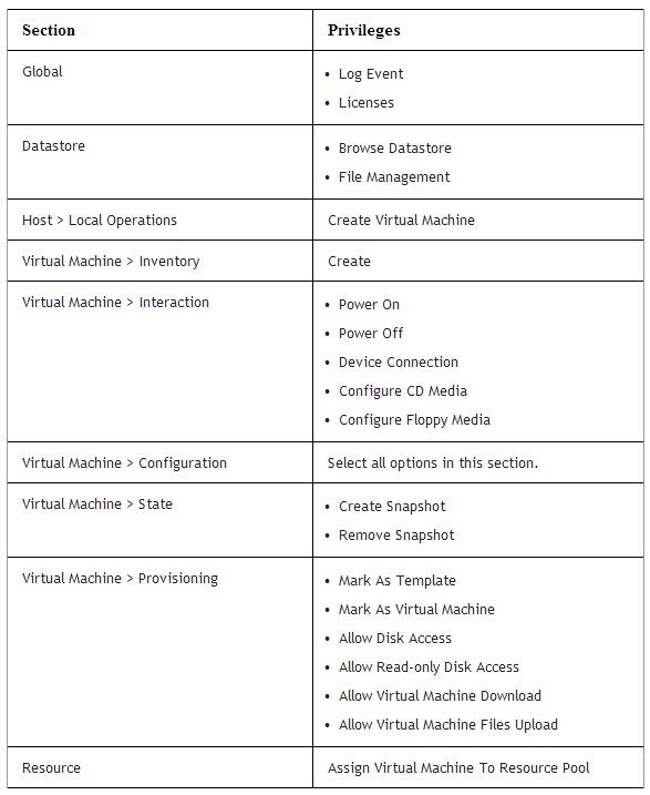 For reference of the required privelages for the vCenter installation, the following was obtained from the Dell support site (http://documents.software.dell.com/DOC21485).