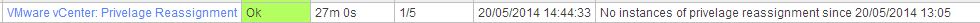 If one or more results are returned, the service status will be set to ‘Critical’ with the status information message that a number of instances of privelage assignment since the process start time have been retrieved.