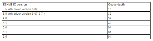 It is important to ensure the maximum queue depth of the HBA is configured to meet the manufacturer and VMware recommendations, which may dependant on the combination of ESXi version and the HBA model and version.