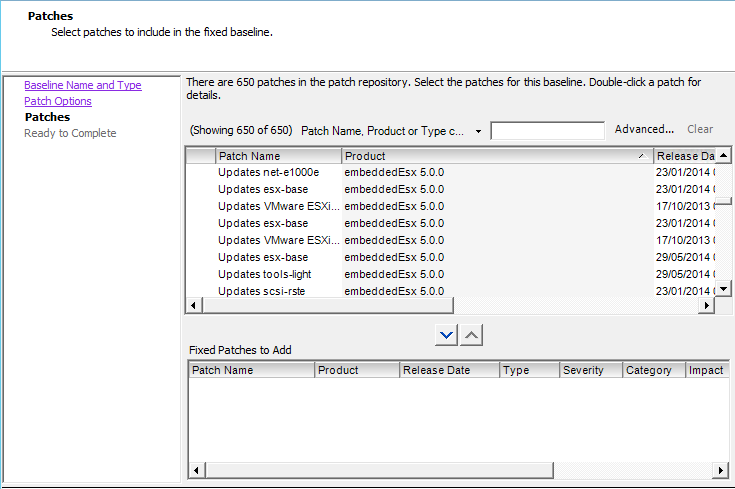 When creating a fixed baseline we are able to select the patches from the patch repository to which we require to include in the baseline.