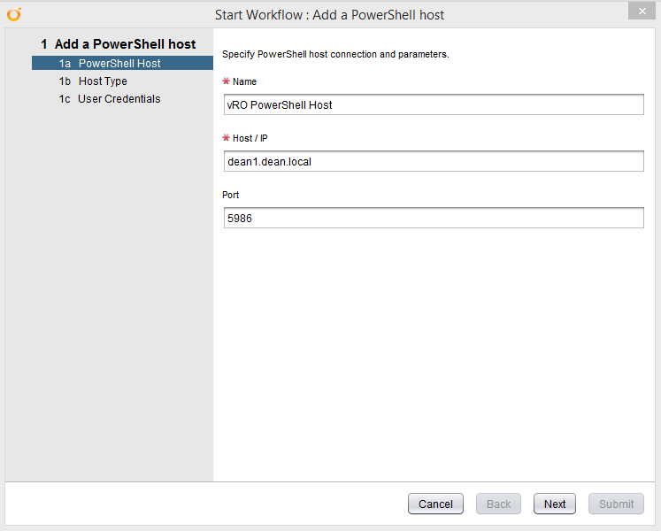 In order to leverage the vRealize Orchestrator PowerShell plug-in to enable interaction between the vRealize Orchestrator appliance and Windows Powershell there is a requirement to add a PowerShell Host to your vRealize Orchestrator configuration, this will only for workflows to interact with Windows Powershell and optionally PowerCLI and the vCenter Server system.